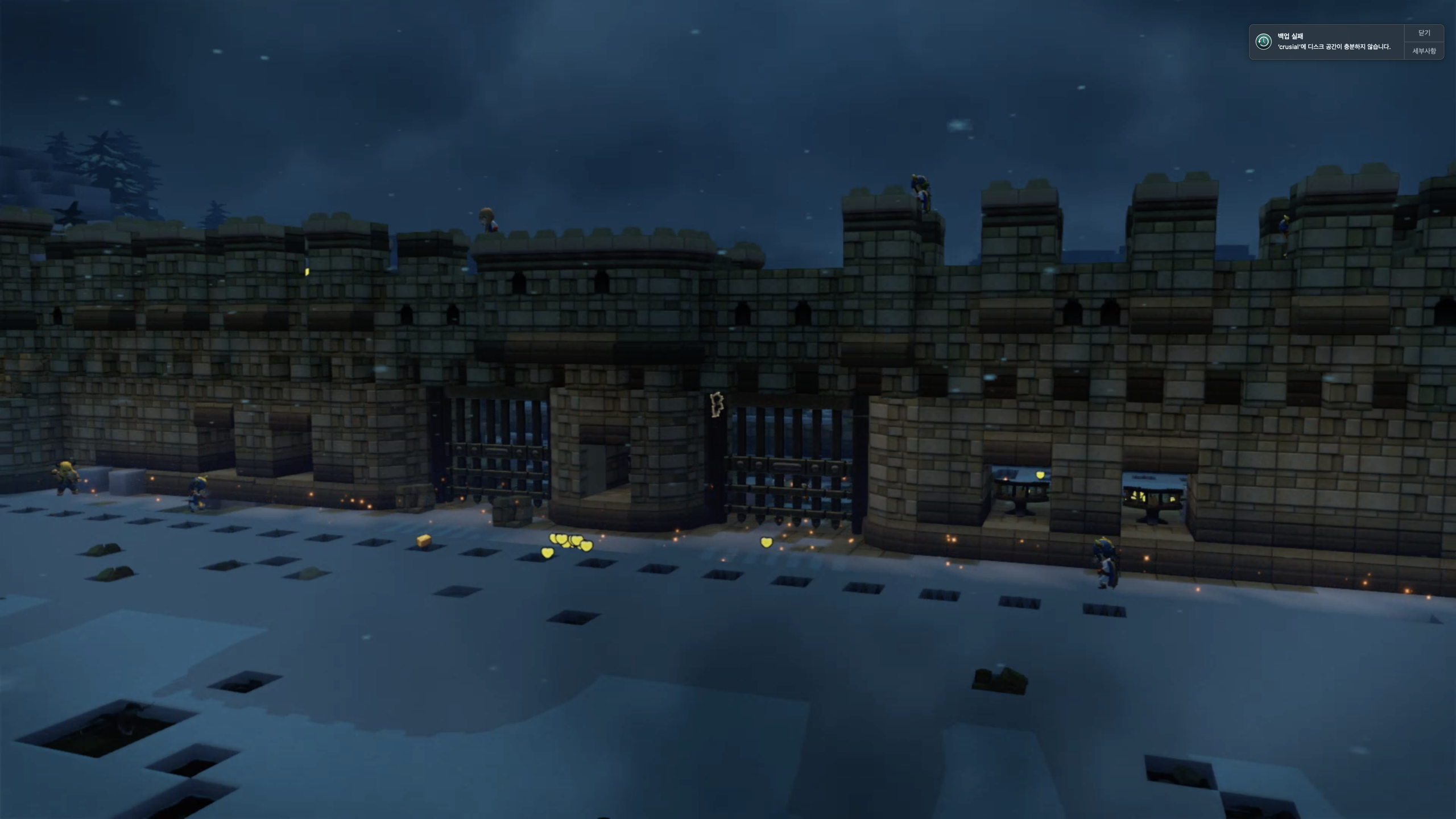 계속 방어진지를 넓혀 나간다. 그중에서 이제 성문은 규모가 이제 까지와 비교하기 애매할 정도로 크다. 재료만 모아주면 알아서 동료들이 어마어마한 성문을 만들어준다.