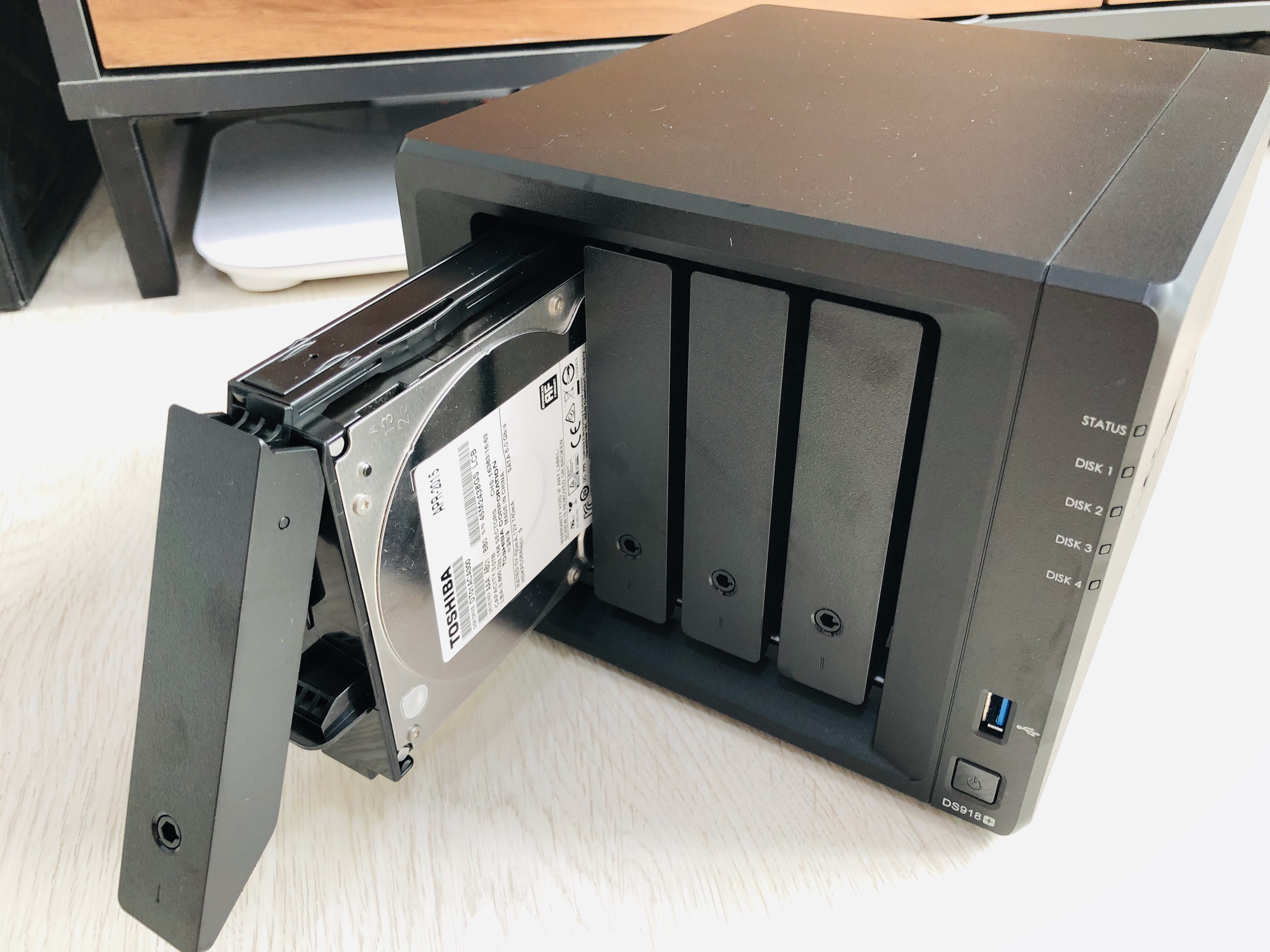 ds918+ 에서 9가 의미하는것은 최대 9개의 저장장치를 연결할 수 있다는 뜻이라는데 흠 일단 눈에 보이는 HDD 베이는 총 4개이다. 나는 일단 하나만 사용하기로 했다. 미러링은 할까 말까 너무 고민임 ㅠㅠ 어쩌징 일단 그건 나중에 생각해 봐야겠다.