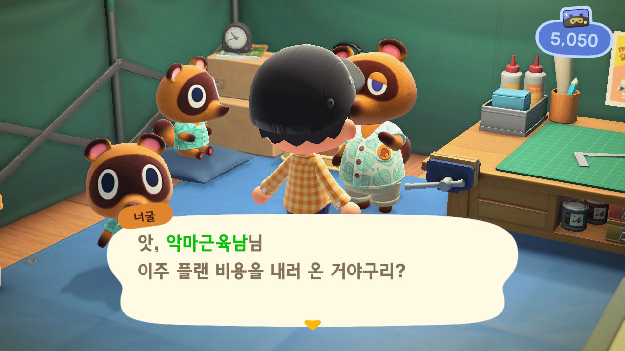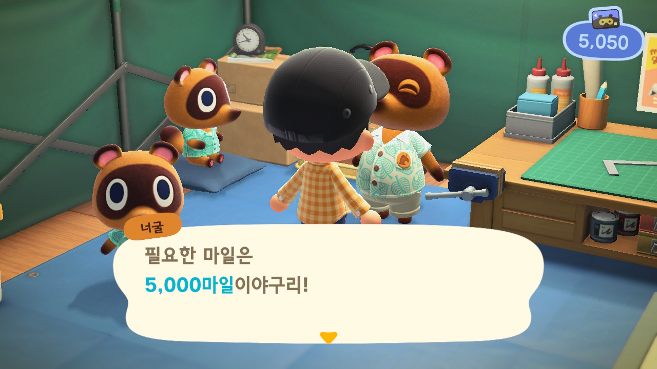 일단 섬에서 각종 수집활동과 마일리지 쌓는 행동들로 모은 5000마일을 너구리에게 지금하면 살고있는 곳에 대해서 너구리가 불편하지 않냐고 물어봅니다. 완전 속보이게 ㅋㅋ