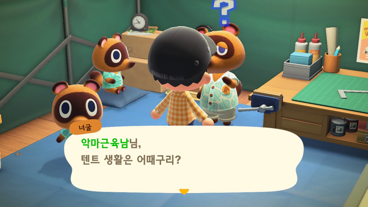 동물의 숲을 처음 시작하게 되면 이놈의 너구리가 그냥 텐츠하나 줍니다.