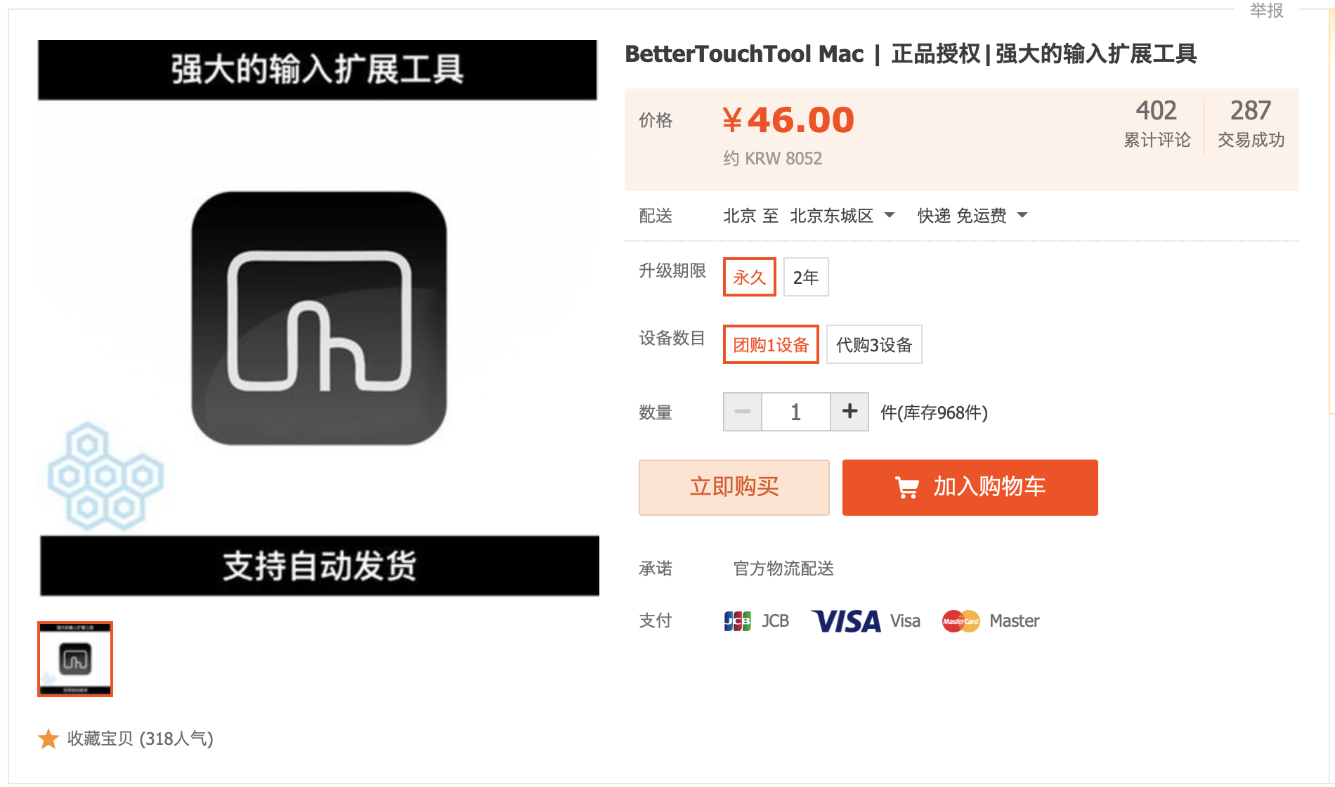 타오바오에서 "bettertouchtool license" 을 검색해 줍니다.