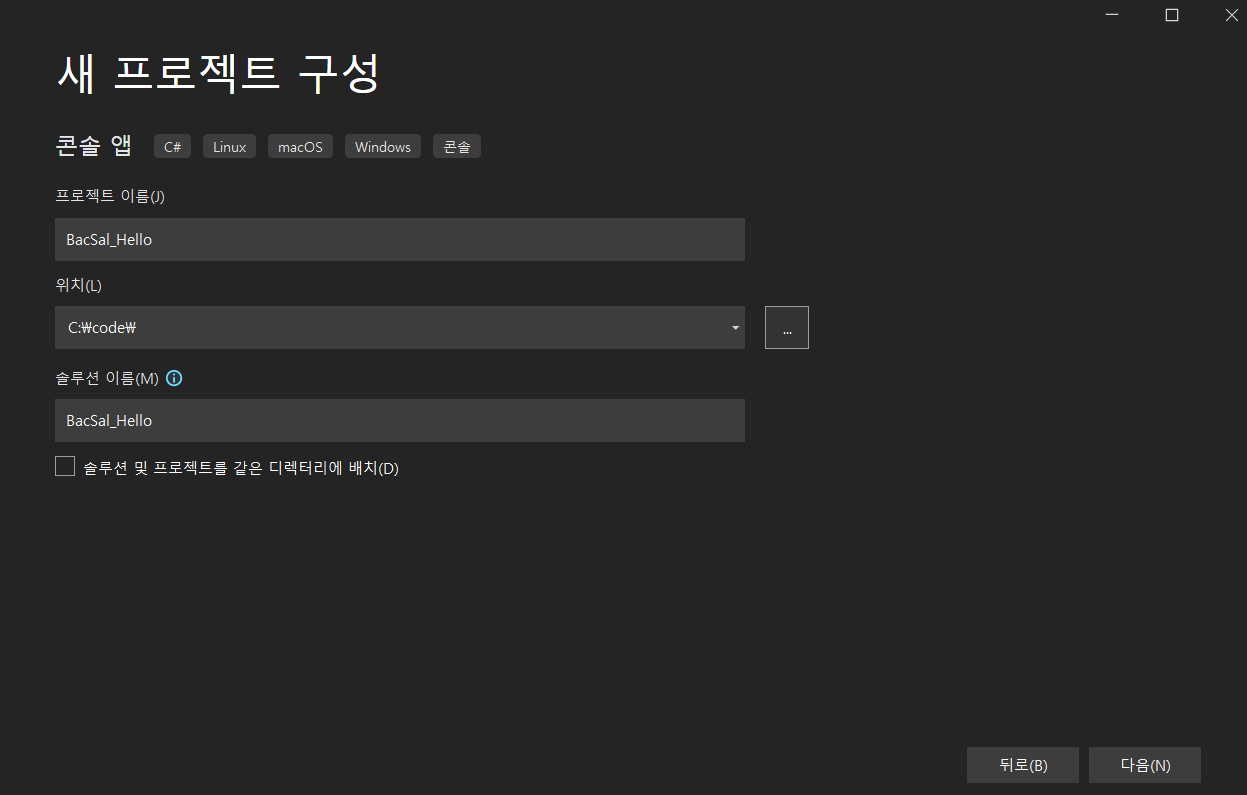 그리고 c# 콘솔 앱을 선택해서 만들어 보겠습니다.