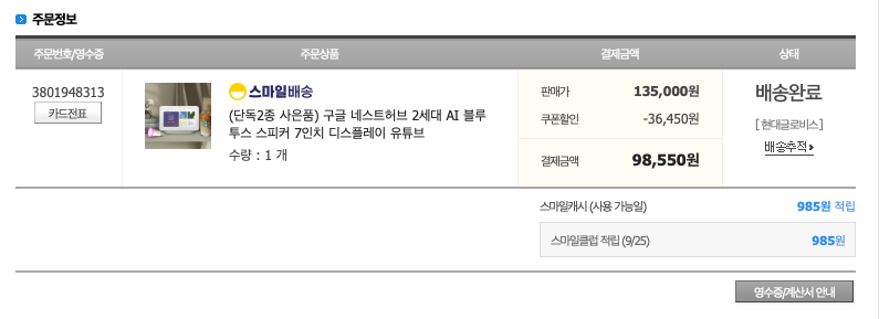제가 구글 네스트 허브를 구매한 가격입니다.