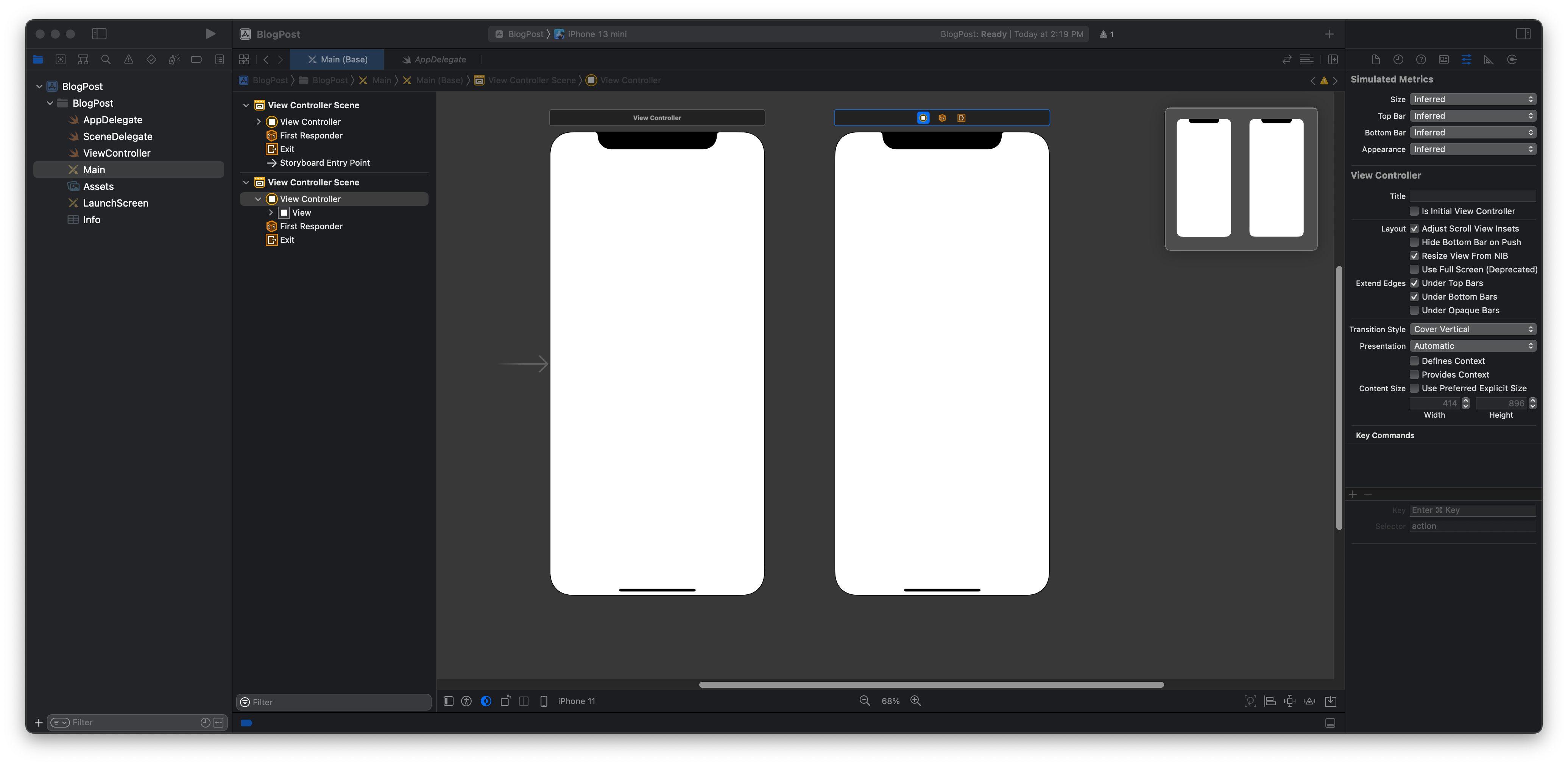 우선 하나의 페이지로 끝나는 앱이 아니라면 화면간 이동이 필요합니다. 이러한 경우에 ios 개발에서는 3가지 정도의 화면이동 방법이 있는데 제가 가장 선호하는 방법으로 설명을 드리겠습니다.