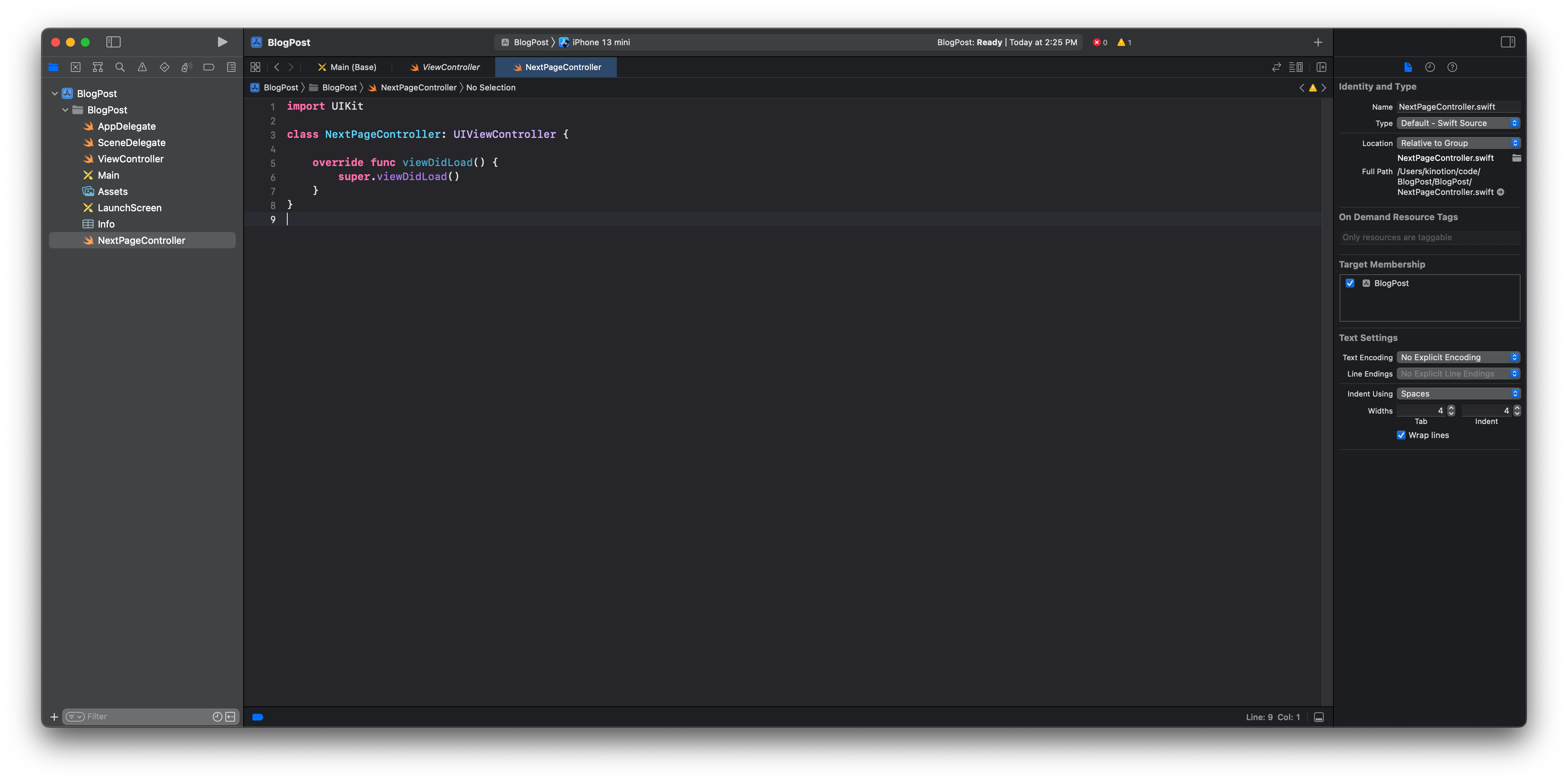 저는 컨트롤러명을 NextPageController로 설정했습니다.