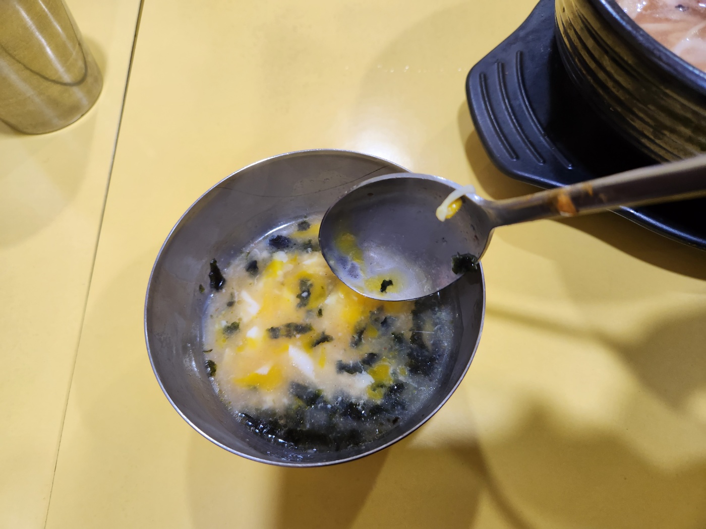 그리고 수란도 같이 주는데 별미 입니다. 뜨거운 국물을 적당히 수란에 넣어서 먼저 위장을 적시라는데 맛이 생각보다 너무 맛있어서 첫인상이 좋았습니다.