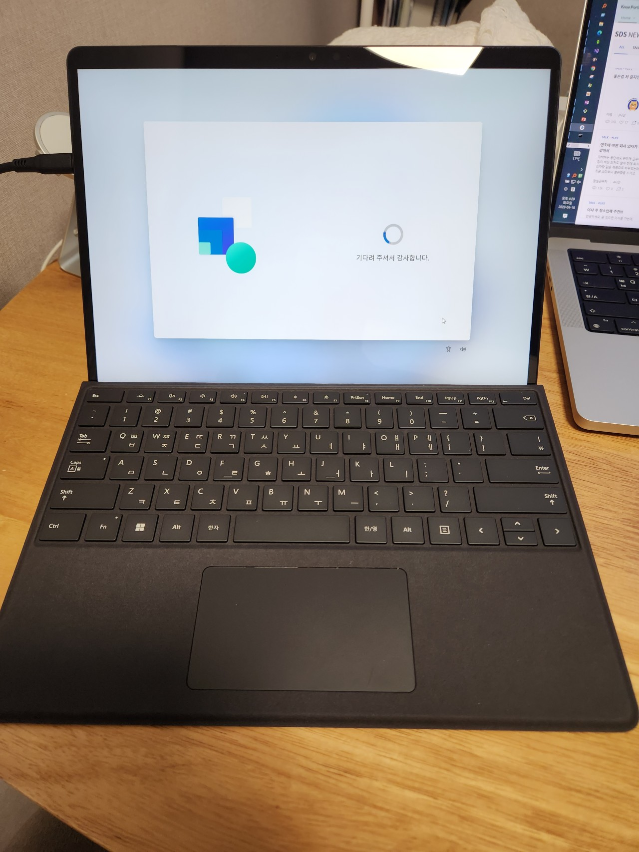 셋팅중~~!! 뒤에 보이는 맥북프로도 짱이긴 하지만 태블릿으로 사용하기 힘들도 무게도 무게 그리고 무엇보다 윈도우 개발은 윈도우~!!