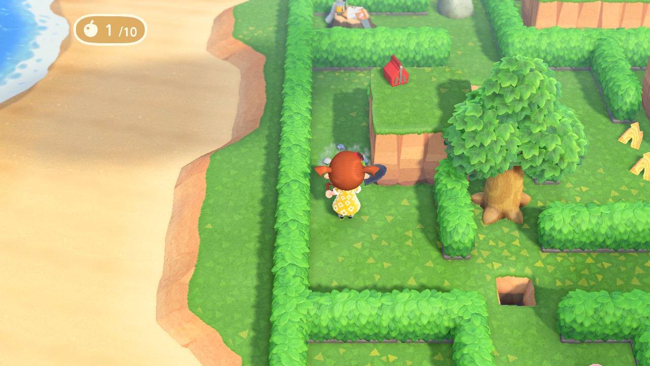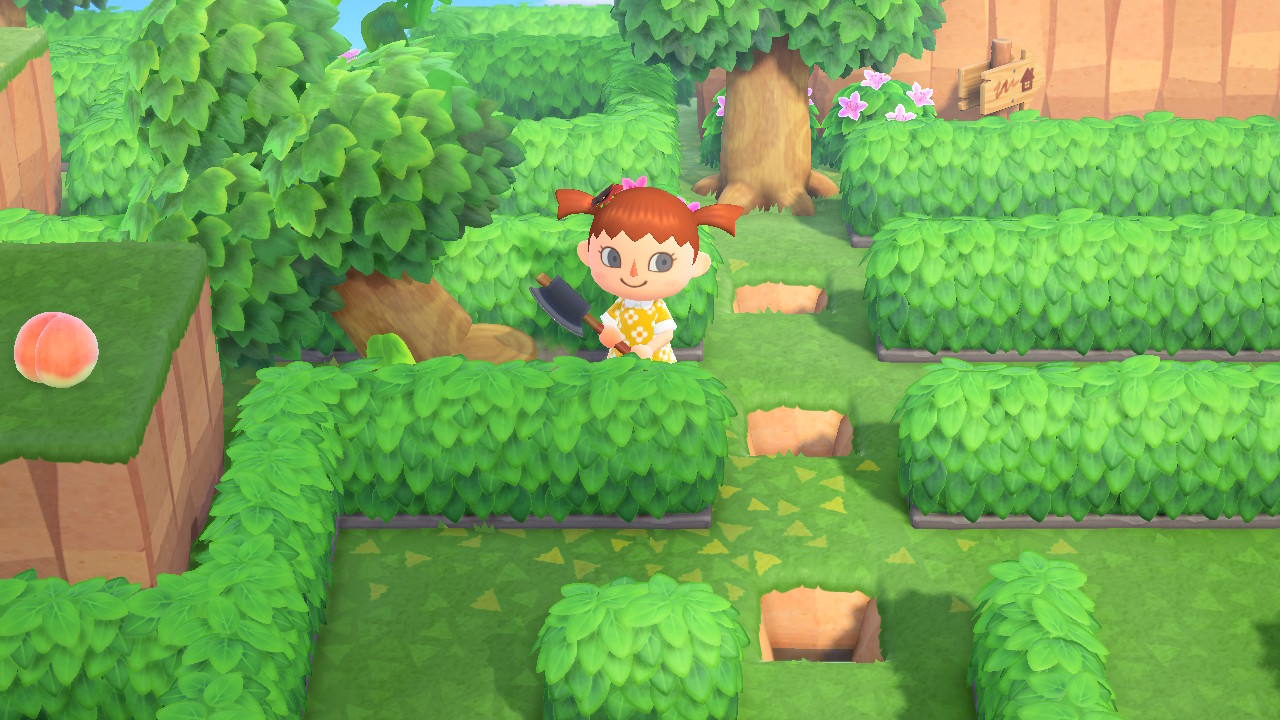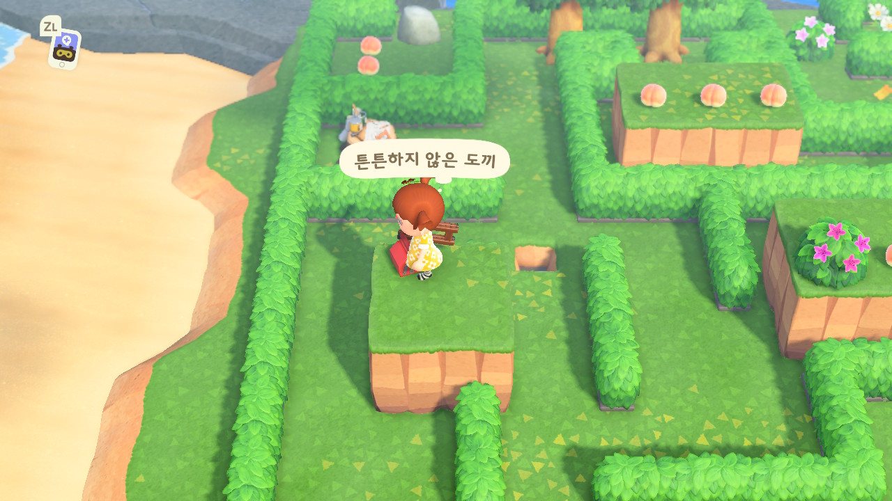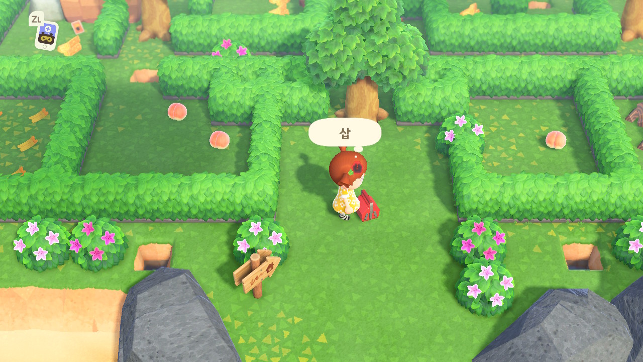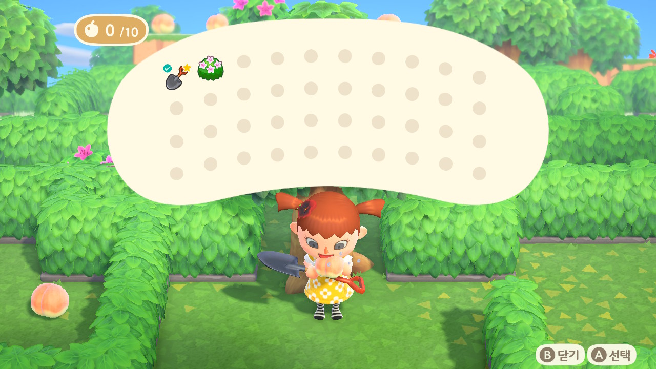 그리고 나무 옆의 화분을 삽으로 퍼서 안의 복숭아를 먹어 줍니다. 이번 미로에서는 복숭아가 핵심입니다.