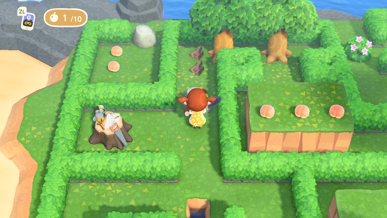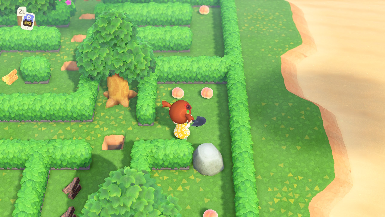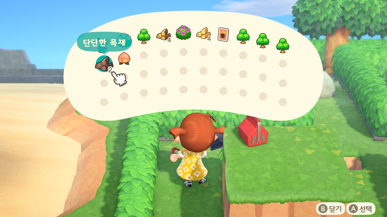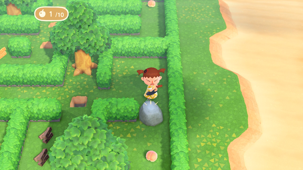 복숭아를 먹고 해당 바위를 깨줍니다. 그럼 단단한 목재 두 개를 얻고 이제 diy에서 사다리를 만들 수 있습니다.