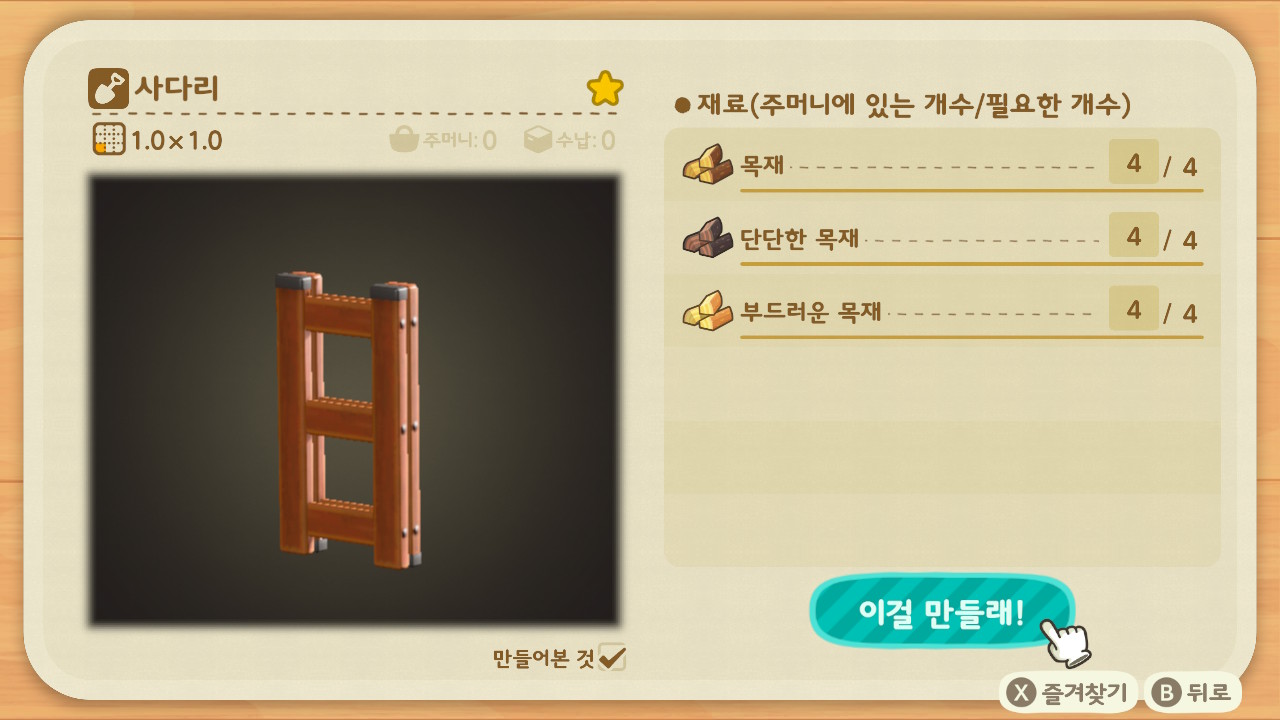 그리고 왼쪽으로 뛰어와서 나무와 사다리 레시피를 주워 줍니다.