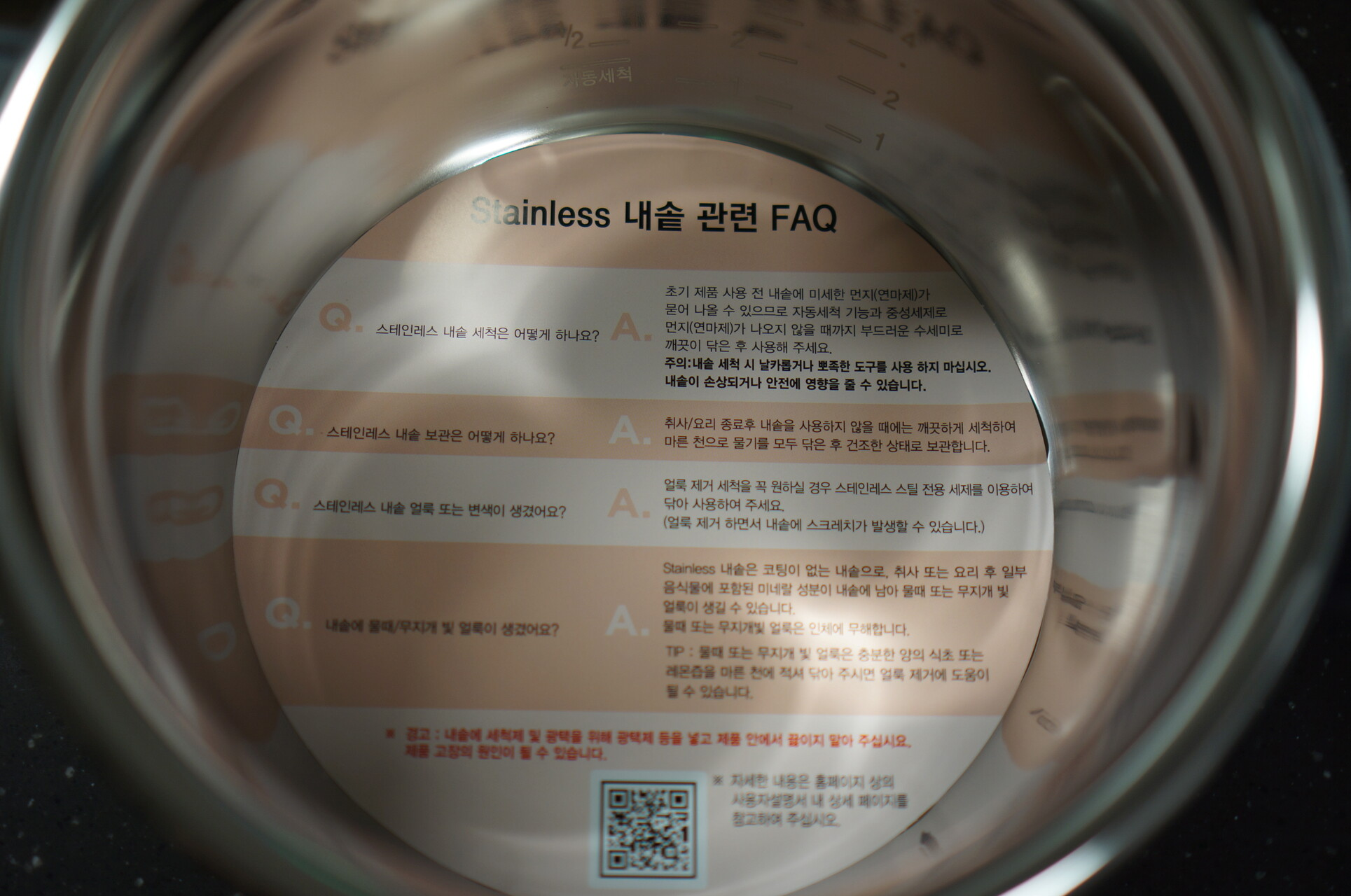 관리법이 뭐 특별할건 없는것 같습니다. 코팅 내솥은 코팅에 상처나지 않게 경고하는 내용들이 많이 있는데 이런게 스테인리스의 장점 이기도 합니다. 대신에 밭이 어느정도 눌러 붙는건 감수해야 합니다.