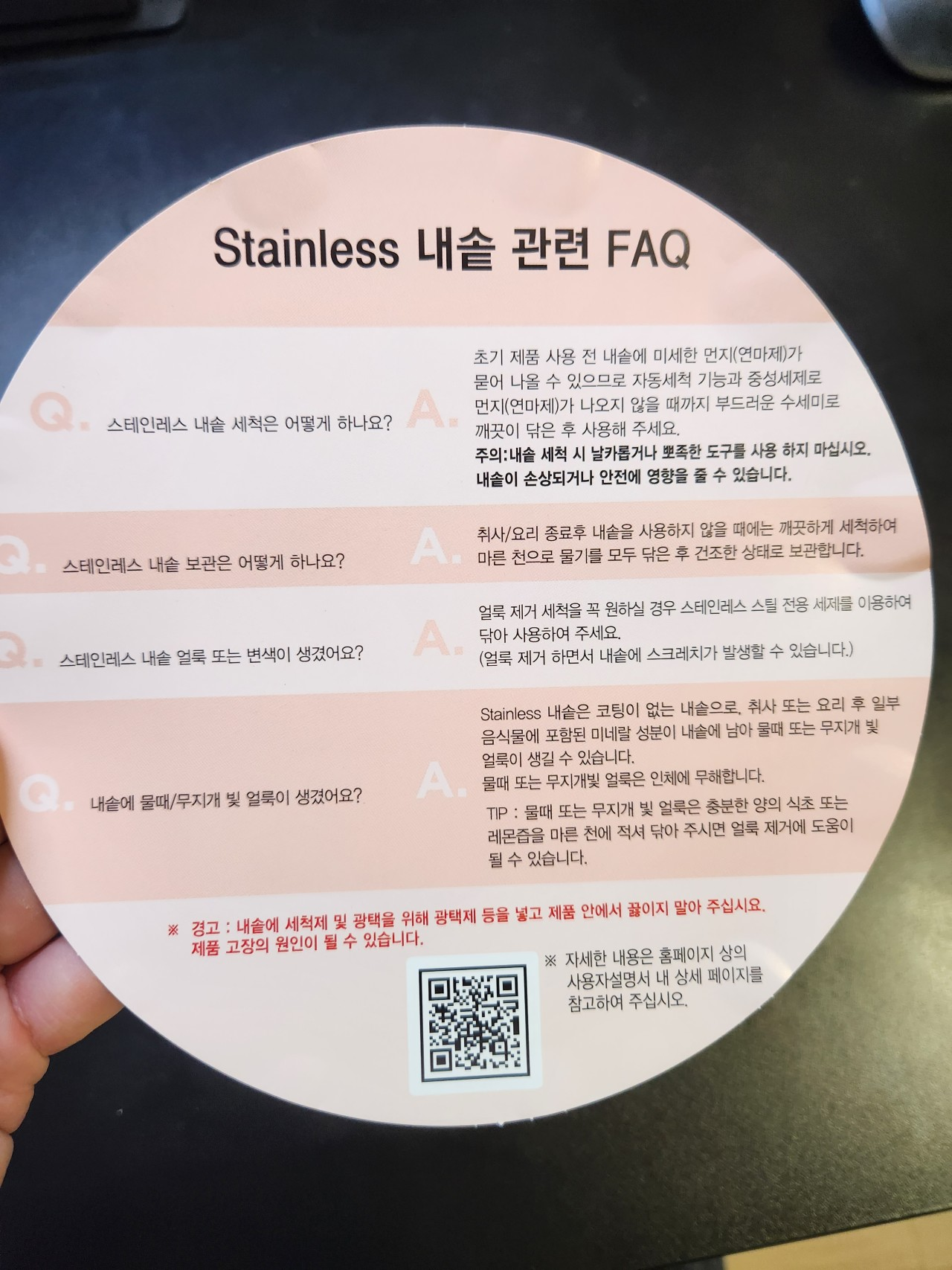 이렇게 스테인리스 내솥 관련 안내서도 안에 들어있습니다.