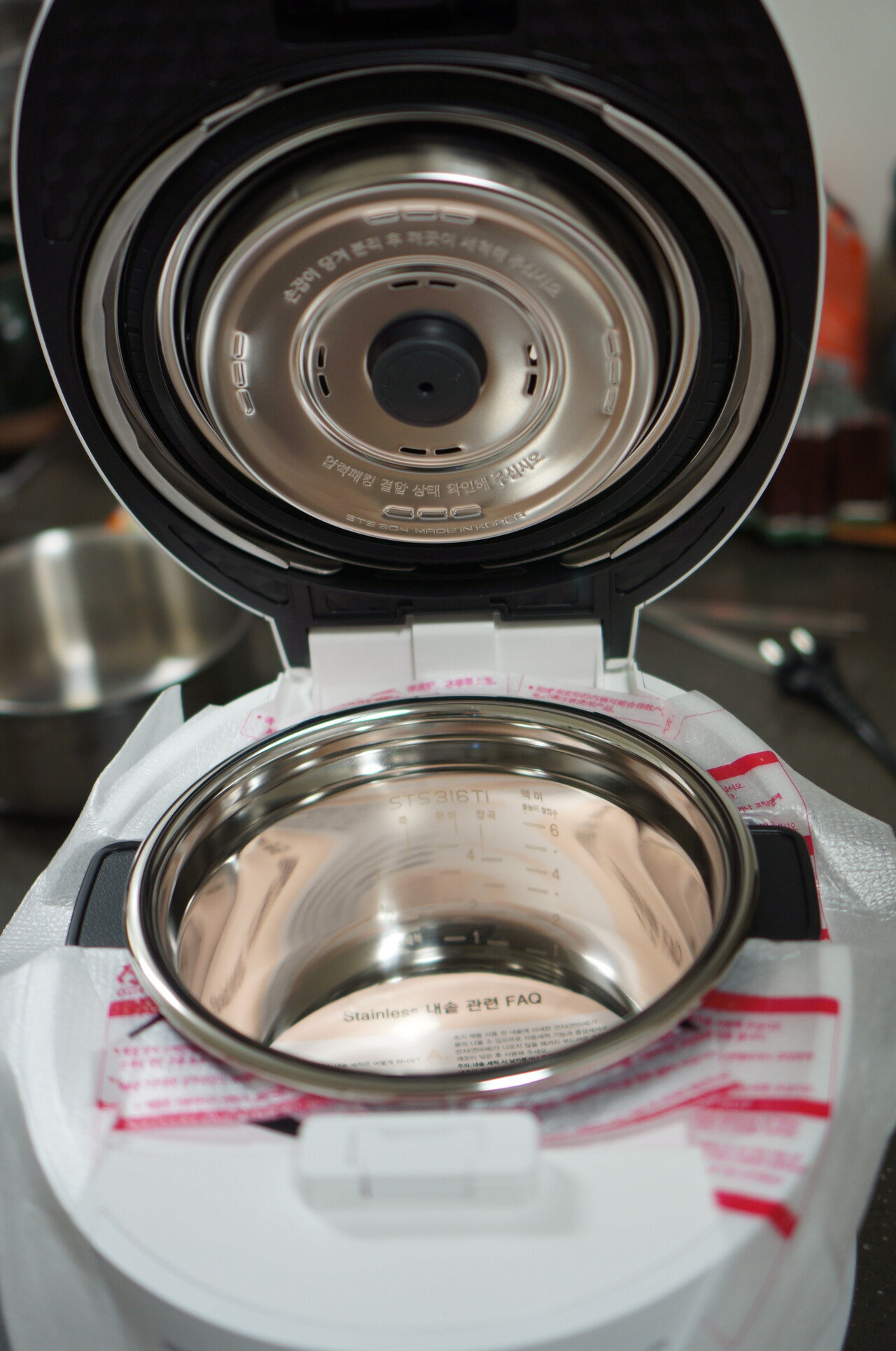 그렇게 알아보다가 그냥 전기 밥솥에서 전기 압력 밥솥으로 넘어 가자!! 라는 생각이 들었고 거기에 이왕이면 코팅 벗겨지면 중금속 이슈가 생기는 코팅 밥솥보다는 좀 눌러붙어도 중금속 걱정없고 그래도 편하게 씻을 수 있는 풀 스테인리스 제품으로 알아보자 해서 찾은게 바로 쿠첸의