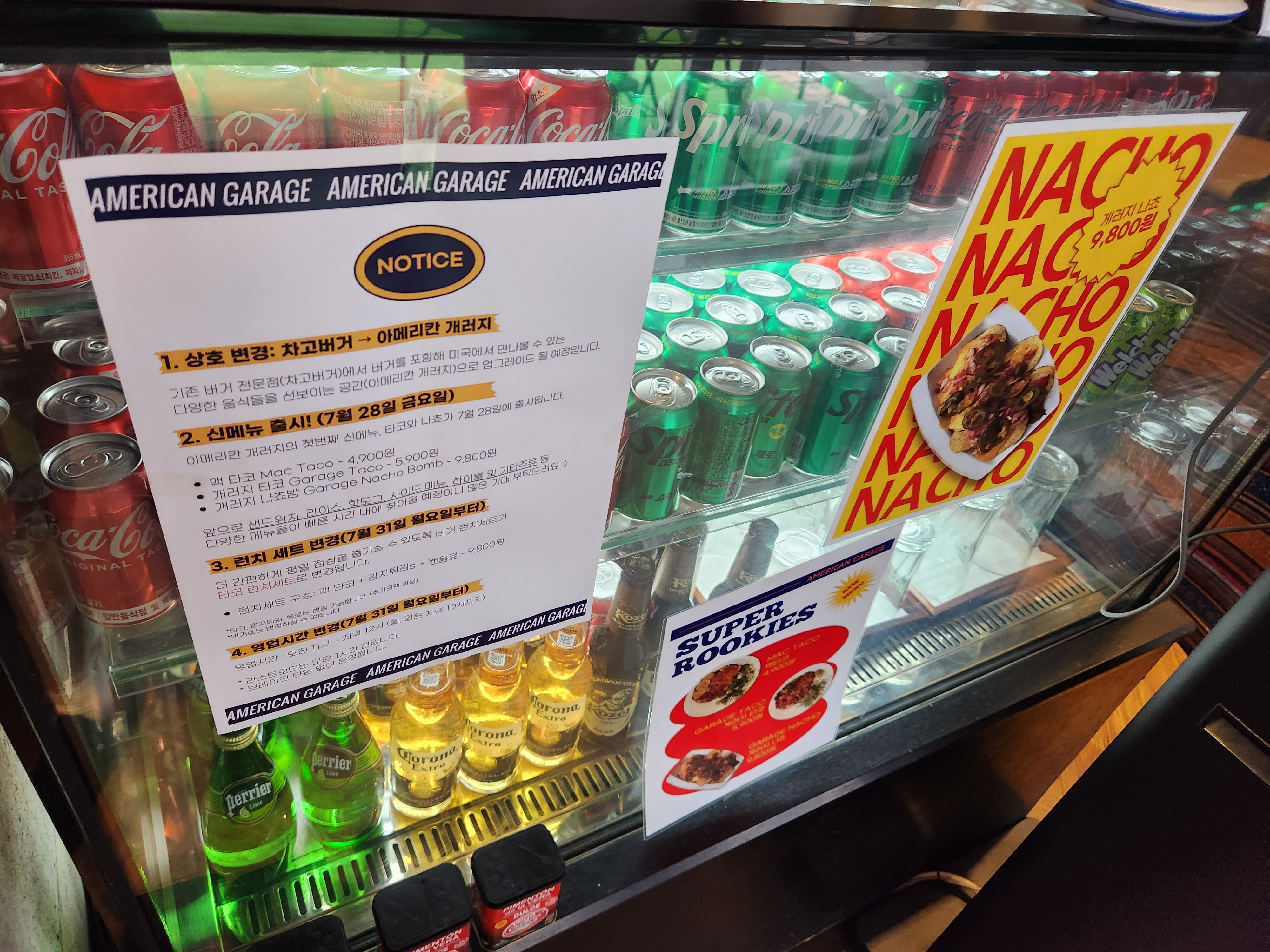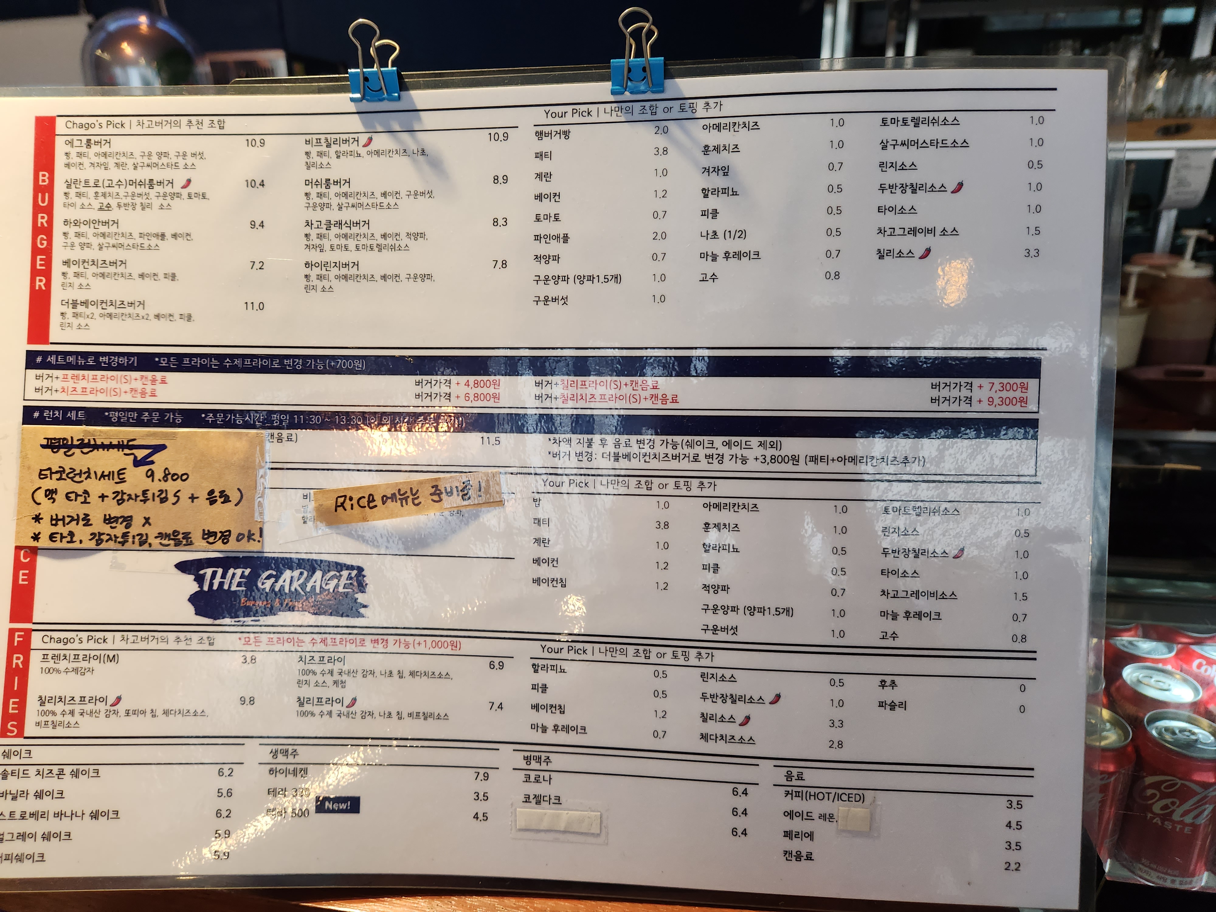메뉴판입니다. 수제버거와 타코까지 판매를 하고 있습니다.