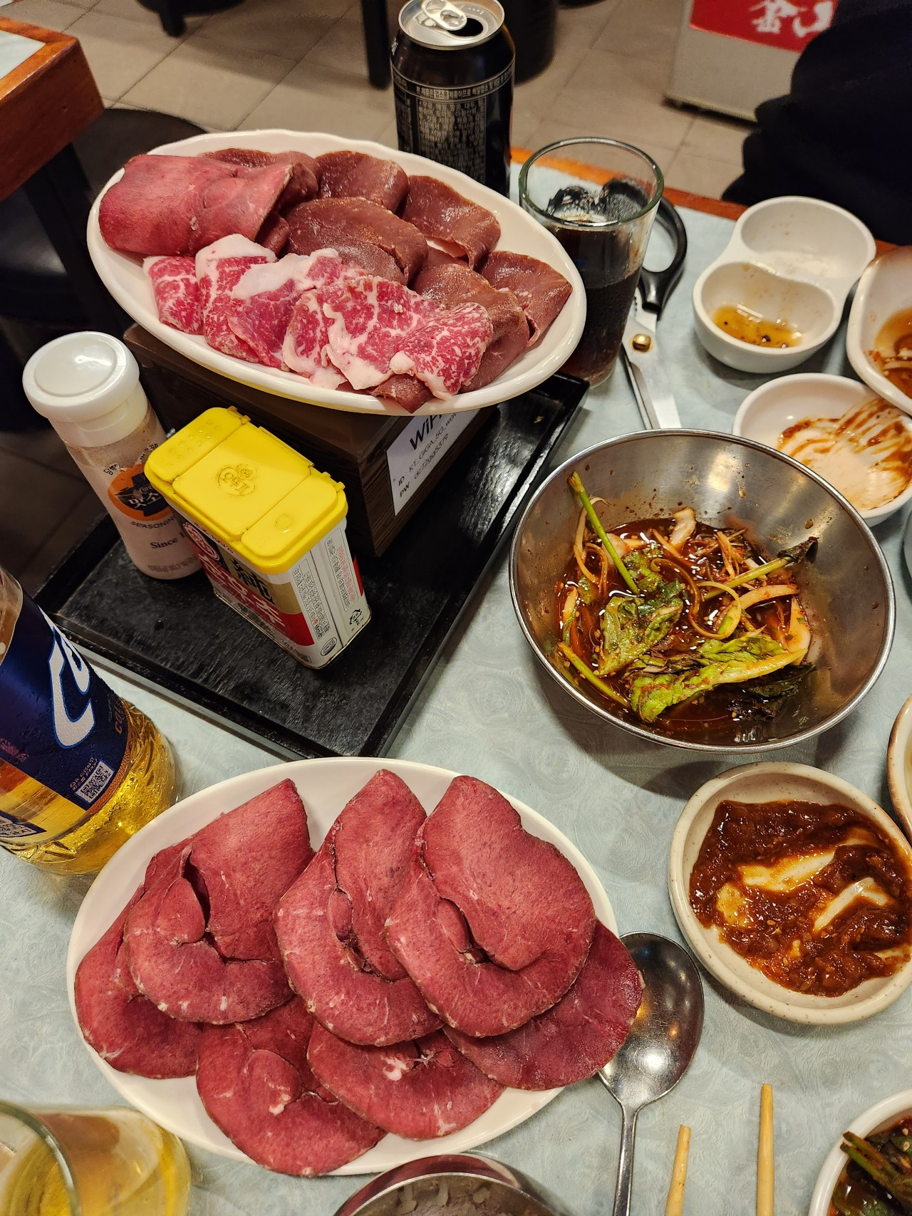 일단 좋은 사람들과 좋은시간이었는데 ㅠㅠ 고기가 나오는 딜레이가 쩜있었서 흐름이 끊기는 느낌이 있었고 좀 더 깊은 대화를 하려다가 그게 안 이루어지는 환경이라서 아쉬웠습니다. 고기만 빨리 나왔으면 맛이랑 가격 그리고 밑 반찬에서는 깔게 없는 식당이었습니다.