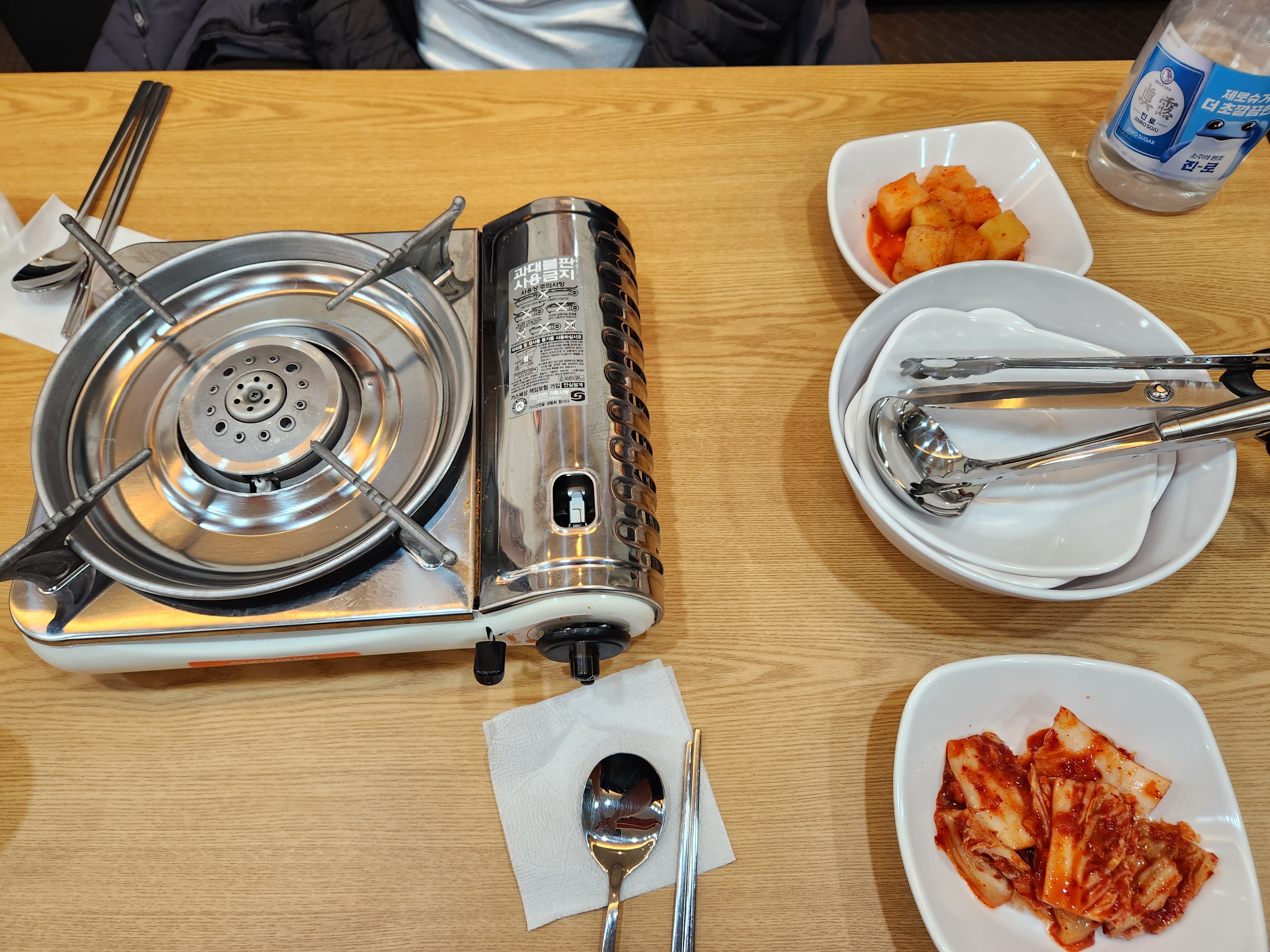 감자탕이라서 끓여야 하기 때문에 버너가 제공 됩니다.