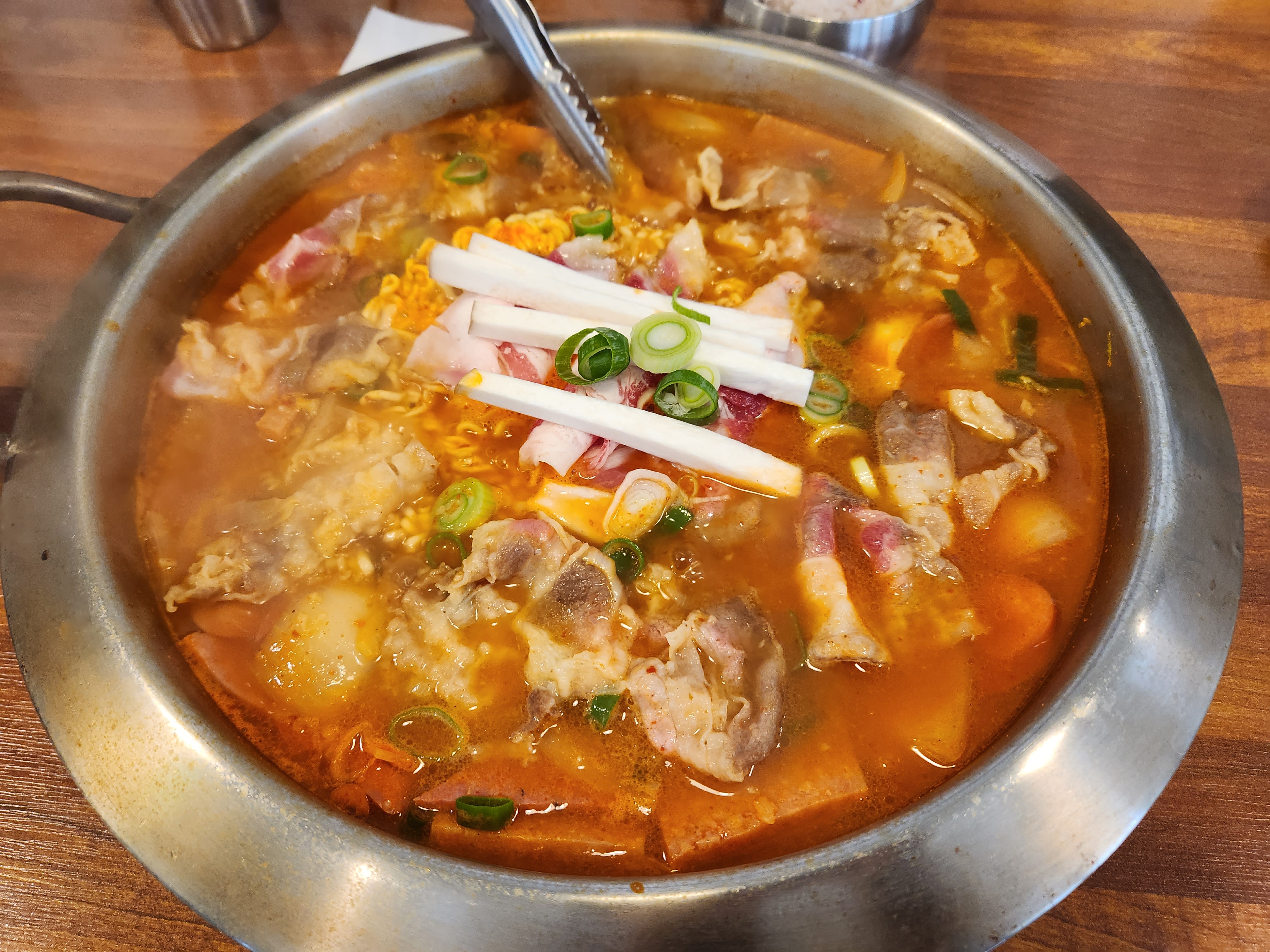 기본 고기 햄 부대찌게를 시켰습니다. 처음 가본 식당에서 기본메뉴를 시키는건 기본이죠.