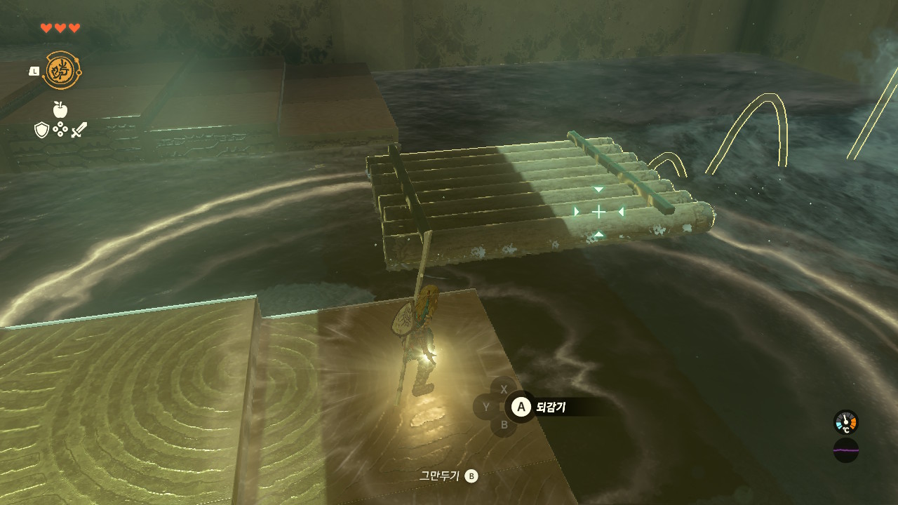 앞으로 가게 되면 땟목이 흘러 옵니다. 여기에 "리버레코"를 사용하면 흘러 내려오는 땟목을 다시 상류로 올릴 수 있습니다.