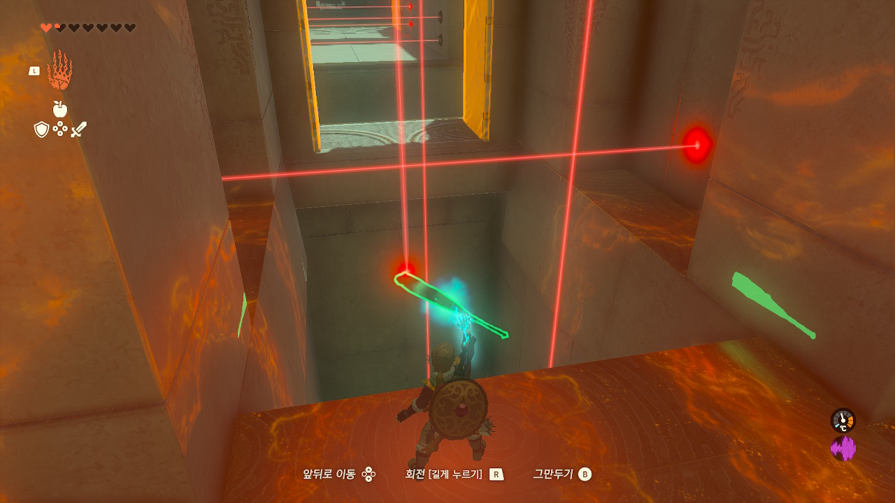 여기 방문을 열고 레이저를 하나만 막으면 바로 아래 바닥이 열리게 되는데 그냥 여기로 뛰어내리시면 아래방으로 이동 가능!!